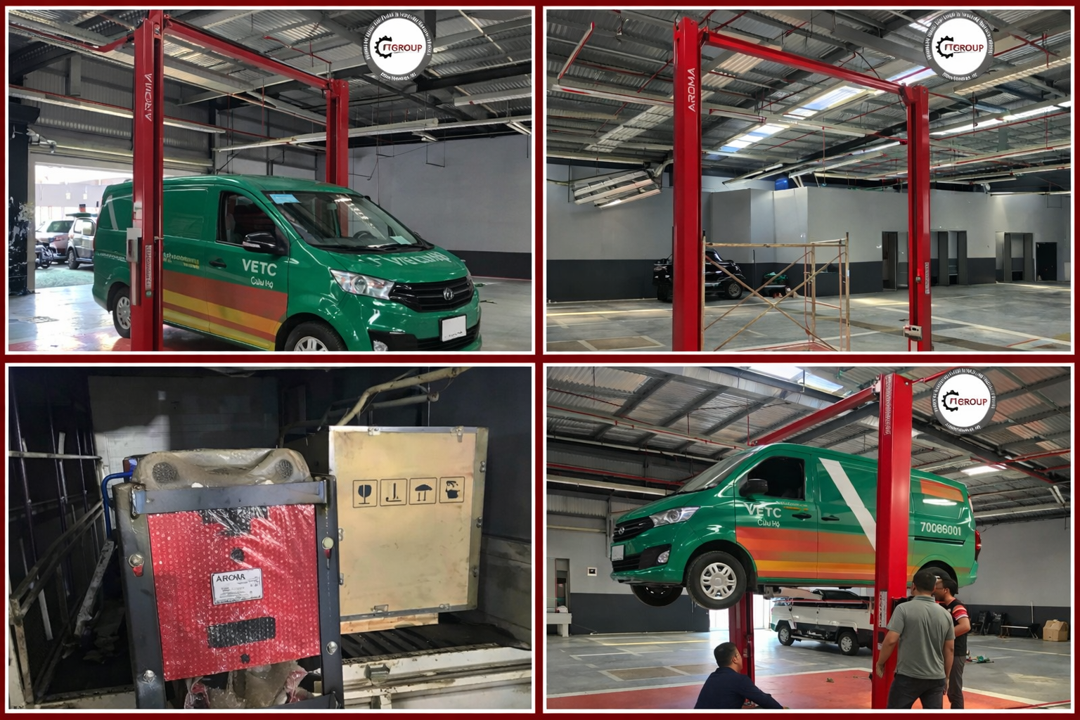 PTP Group tiếp tục hoàn thiện dự án lắp đặt cầu nâng 2 trụ giằng trên AROMA 4,5 tấn cho khách hàng đại lý.