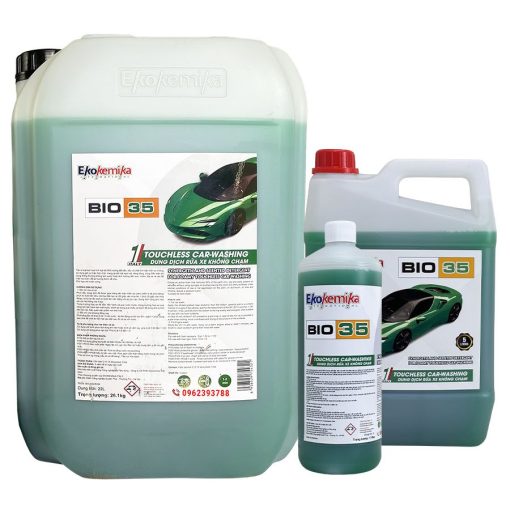 BIO35 là dung dịch gốc kiềm, tạo ra loại bọt hoạt tính siêu đậm đặc loại bỏ 95% lượng đất bẩn, dầu và chất tĩnh điện trên xe, không sử dụng giẻ cọ hoặc bàn chải, mang lại bề mặt sạch sẽ, sáng bóng, trong điều kiện sử dụng thông thường không làm xước hoặc ảnh hưởng đến sơn, nhôm, lốp xe và các bề mặt mạ crom, để lại hương thơm dễ chịu.
