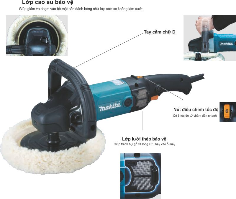 Máy chà nhám đánh bóng Makita 9237C 1200W sở hữu công suất mạnh mẽ, tốc độ lên đến 3000 vòng/phút, giúp đánh bóng và làm mịn bề mặt nhanh chóng, hiệu quả. Máy tích hợp điều khiển tốc độ điện tử, khởi động êm và thiết kế chắc chắn, phù hợp cho công việc chuyên nghiệp.