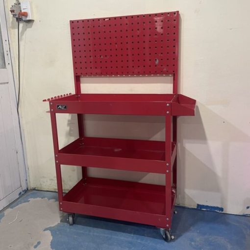 Xe đẩy đựng đồ nghề có cấu tạo gồm 3 ngăn đựng, bên trên có bảng treo dụng cụ, khung tủ cũng được thiết kế thêm các lỗ treo dụng cụ.